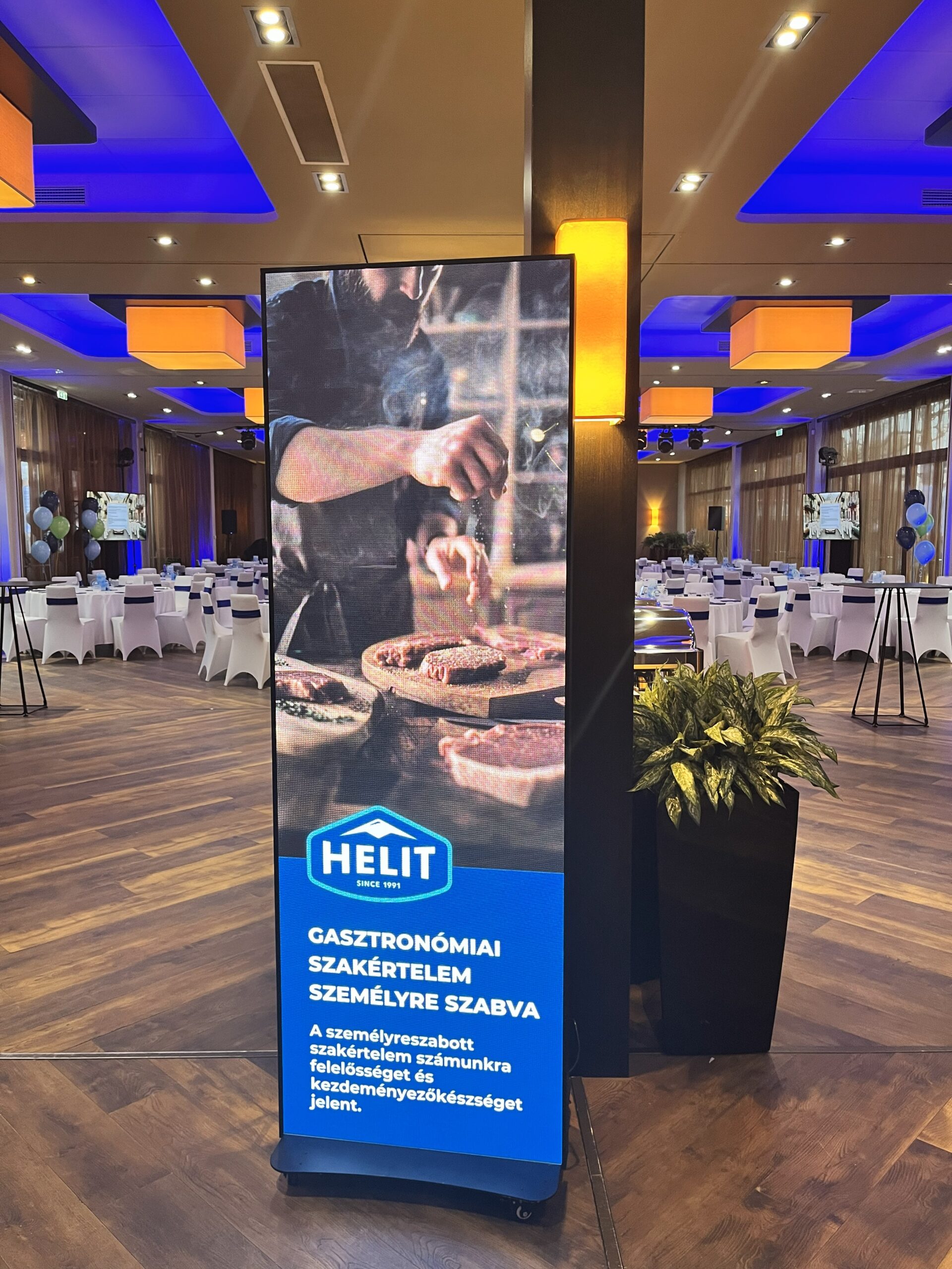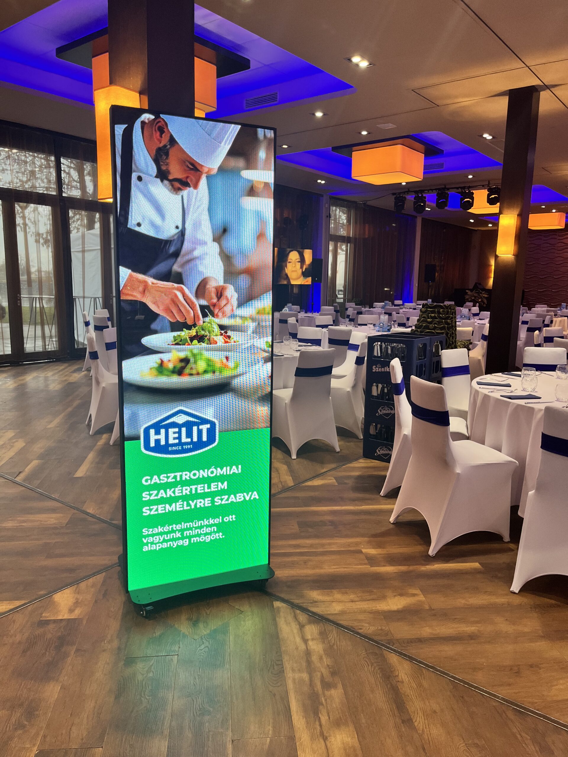 A LED poszter egy önálló, álló digitális kijelző, amely mozgóképpel, szöveggel vagy akár videóval kommunikál. Karcsú, könnyen mozgatható, és bármilyen beltéri környezetbe azonnal beilleszthető.